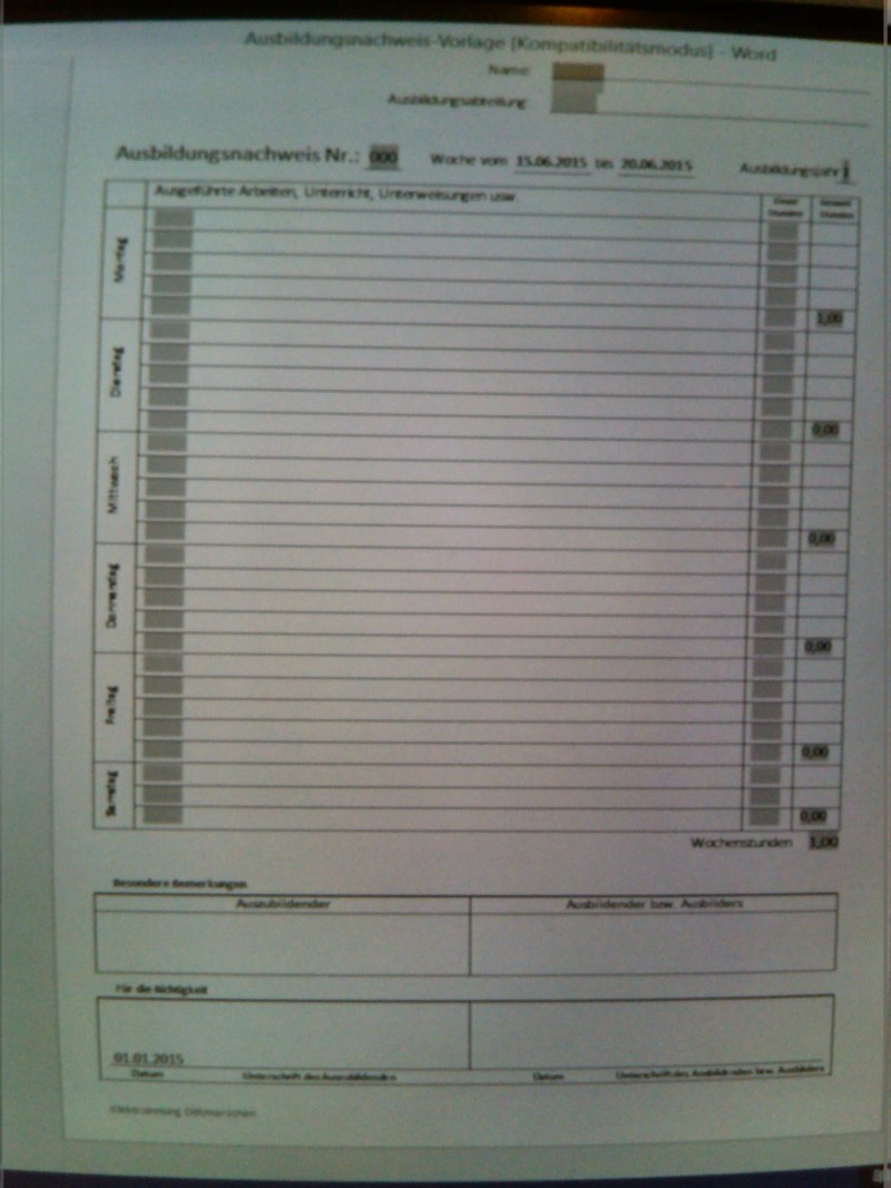 Von mir erstellte, etwas vereinfachte Berichtsheft-Vorlage
